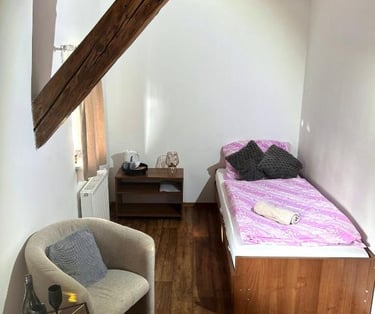 1x pokoj (1x manželská postel 1x odděl. postele)